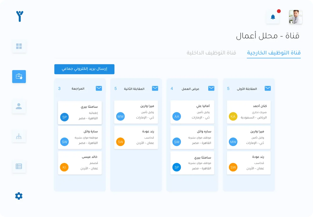 يمكنك إلقاء نظرة على السيرة الذاتية لمقدم الطلب والملف الشخصي بالتفصيل. يمكنك أيضًا ترك التعليقات وإرسال رسائل البريد الإلكتروني ودعوة المتقدمين إلى المقابلات ونقلهم إلى المستوى التالي من قنوات التوظيف.