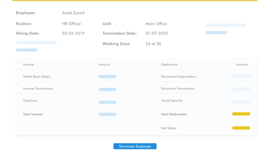 H4 END OF SERVICE MANAGEMENTKayanHR performs a full scan for pending requests and uncompleted transactions when you terminate an employee service. Kayan calculates the employee’s final settlement for you.